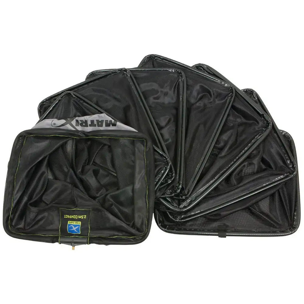 Der kompakte Matrix Setzkescher wurde für künstliche Angelplätze entwickelt und ist die ideale kleinere Wahl für Sportangler, die oft mehrere Netze benutzen müssen. Besonderes Augenmerk wurde auf ein weiches und fischfreundliches Netzmaterial gelegt, das, durch die schwarze Färbung, dafür sorgt, dass der Fang im Netz ruhig bleibt. Die Setzkescher sind mit strapazierfähigen Kunststoffringen und -griffen sowie starke, doppelte Schraubverbindungen ausgestattet.