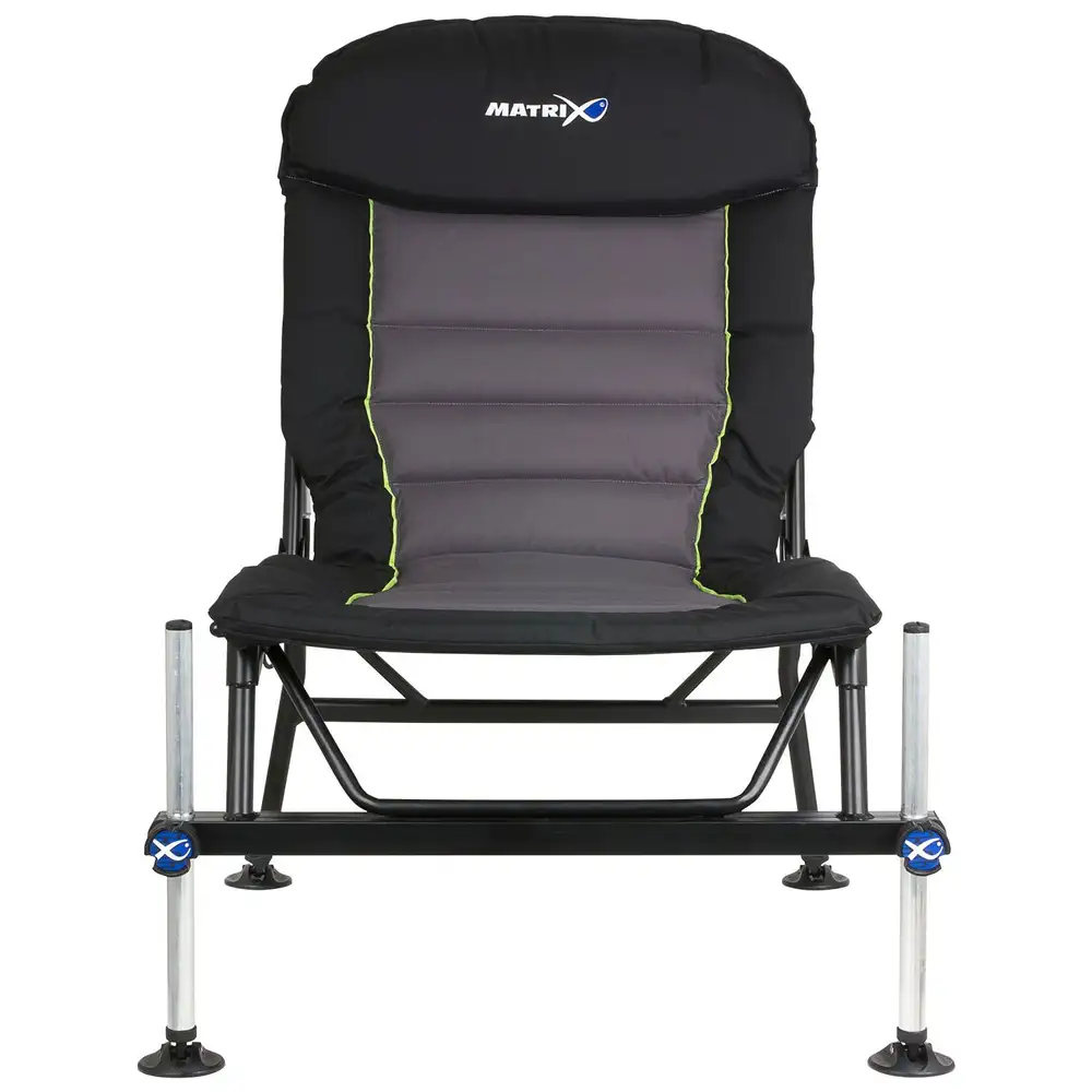 Ein Luxuriöser Stuhl mit starker Polsterung, entwickelt für das Angeln mit Feeder oder Pose. Der Stuhl hat einen leichten Alu/Stahlrahmen und die 25mm Aluminiumbeine nehmen sämtliches 3D-Zubehör auf. Er hat eine abnehmbare Beinverlängerungen an der Rückseite und die dazu passende Aufbewahrungstasche für die Beinverlängerungen.