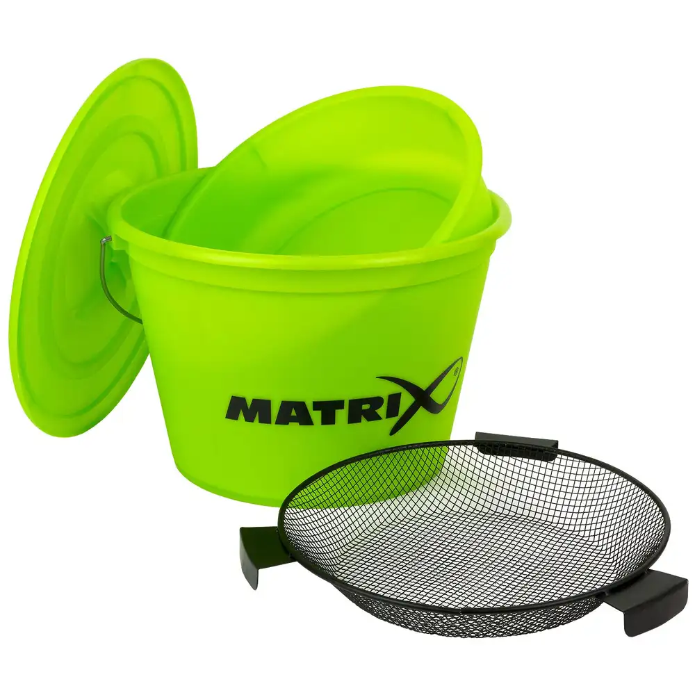 Ein grüner Plastikeimer mit einem Fassungsvermögen von 17 l, der sich ideal für den Transport von Partikeln, Spodmischung, Pellets usw. eignet. Dieser Eimer hat einen Deckel, eine herausnehmbare Schale, und eigent sich hervorragend zur Aufbewahrung von Hakenköder, PVA-Zubehör, Haken usw.