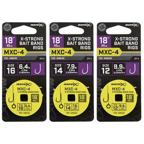 Matrix MXC-4 Eyed Barbless X-Strong Bait Band Rigs 45cm