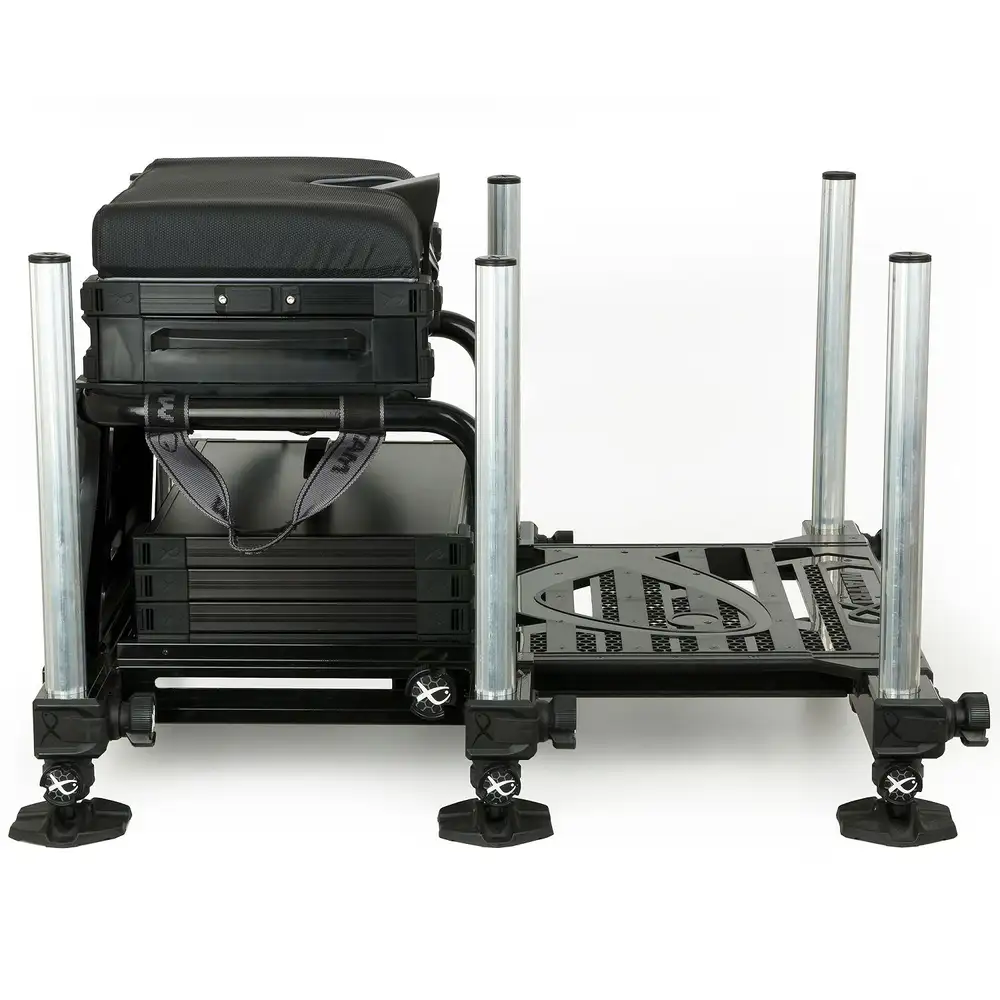 Die verzugfeste Fußplatte kann nahtlos unter den Rahmen geschoben werden, wenn der Sitzkasten nicht benutzt wird. Dadurch entsteht ein karrenfreundliches Profil, das sich gut transportieren und verstauen lässt, während der Transportdeckel es Ihnen ermöglicht, eine Reihe von Zubehörteilen in Ihrem Sitzkasten zu transportieren, wodurch Sie Zeit beim Einrichten sparen und die Gewissheit haben, dass alles, was Sie brauchen, griffbereit und zum Angeln bereit ist.